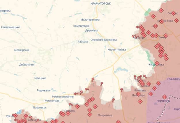 Розвідка відзначає, що за останній місяць російська армія збільшила свої тактичні здобутки на Донеччині, зокрема поблизу Костянтинівки, що прилягає до Слов'янсько-Краматорської агломерації.