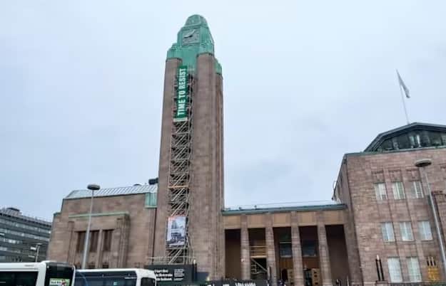 Активісти Greenpeace вранці 11 червня залізли на вежу залізничного вокзалу у столиці Фінляндії Гельсінкі та на кілька годин вивісили там свій банер з гаслом "Час чинити спротив".