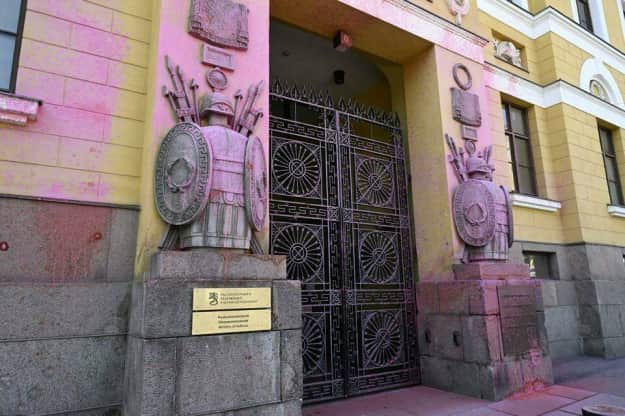 Фасад будівлі Міністерства оборони Фінляндії облили рожевою фарбою в ніч проти суботи.
