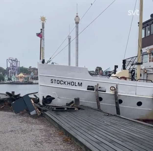 Інцидент стався у суботу 12 липня на причалі острова Кастельгольмен у центрі Стокгольма. Велике прогулянкове судно з 204 пасажирами на борту влетіло носом у берег, пошкодивши причал. Корабель повертався після екскурсії.