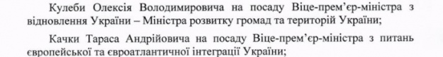 У переліку запропонованих членів оновленого уряду Тараса Качку номінують на посаду віцепрем’єра з європейської та євроатлантичної інтеграції, яку досі обіймала Ольга Стефанішина. Раніше лунали припущення, що за ним залишать лише євроінтеграційний напрямок.