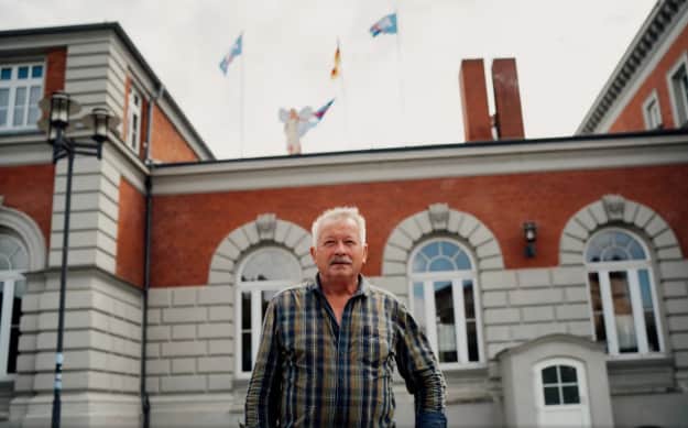 Власник, Поппе Геркен, каже, що "не розуміє галасу" і має право вивішувати на своїй власності все що заманеться. Сам він приїхав до Бютцена ще на початку 90-х у підприємницьких справах, і, вражений занепадаючою будівлею у стилі неоренесансу, захотів викупити її. Проте зараз велетенська споруда стоїть майже порожня.