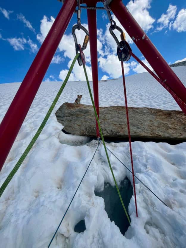 У якийсь момент власник тварини провалився під сніг і потрапив в ущелину завглибшки вісім метрів. У чоловіка при собі була аматорська рація, за допомогою якої він викликав допомогу.