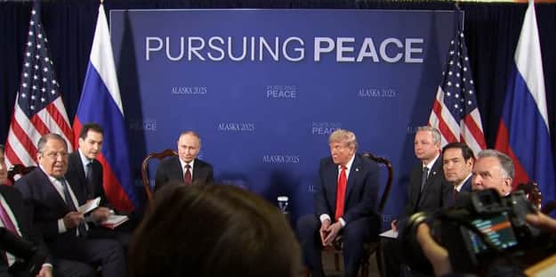 Переговори лідерів США та Росії розпочались. Державний секретар США Марко Рубіо та спецпосланець Стів Віткоф сидять поруч із Трампом, а міністр закордонних справ Росії Сергєй Лавров та Юрій Ушаков – поруч із Путіним.