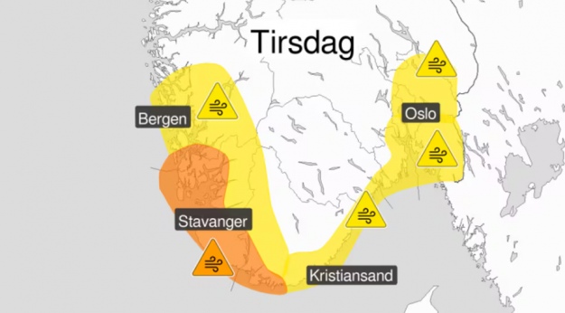 Для районів уздовж південного узбережжя Норвегії – включно зі столицею Осло – також оголосили попередження жовтого або помаранчевого рівня. Найсильніші шквали вітру до 35 метрів за секунду очікуються на узбережжях та високо в горах, вздовж берегів та у деяких фйордах можливі високі хвилі.