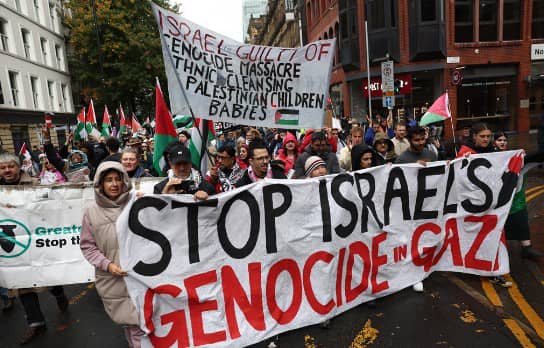 Акція у Манчестері вже завершилась, про затримання на ній не повідомляють. Учасники йшли ходою через місто із плакатами "зупиніть геноцид Ізраїлю у Газі". Поруч зібрався невеликий контрпротест.
