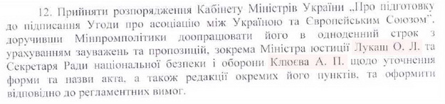 Согласно протоколу, были только замечания главы Минюста Елены Лукаш и секретаря СНБО Андрея Клюева относительно названия и других технических вещей..