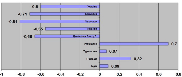 Как установили в своих исследованиях Сухас Кеткар и Дилип Рао, для того чтобы диаспорные инвесторы купили облигации, в стране их происхождения должен быть хотя бы минимальный уровень государственного управления. К сожалению, Украина в этой сфере имеет не самые лучшие результаты, что видно из рисунка 2.