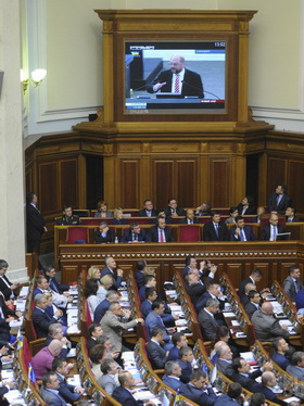 | Зал Верховной рады на видеосвязи с Европарламентом, фото УНИАН |