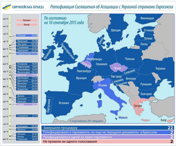 "Европейская правда" летом и весной следила за тем, как идет ратификация соглашения (см. статьи "Ратификация на марше", "Состояние ратификации в июне" и "Кто тормозит соглашение с Украиной?").