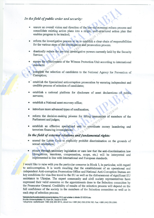 В документе утверждается, что ситуация в сфере антикоррупции не просто тревожная – ПДВЛ на грани срыва. "Рекомендации ЕК практически не выполнены", – констатируют его авторы. Они же просят генерального прокурора не позднее 10 октября внести изменения в состав конкурсной комиссии.