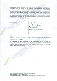 Рекомендации посла ЕС взяты не с потолка – они основаны на выводах оценочной миссии ЕС, которая находилась в Украине в начале сентября.
