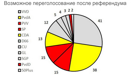 Две более или менее проукраинские партии, социал-демократы PvdA (член правительственной коалиции) и христианские демократы CDA, уже заявили, что будут учитывать волю избирателей во время повторного голосования в парламенте. PvdA, CDA и две в целом скептические к Украине партии – SP и PVV – имеют 81 место в парламенте (из 150).