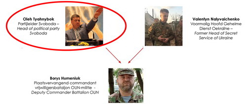 | Популярная в нидерландских СМИ инфографика. (нижняя часть иллюстрации удалена по просьбе автора фото - выяснилось, что голландцы разместили фото посторонних лиц, назвав их "бойцами батальона ОУН") |