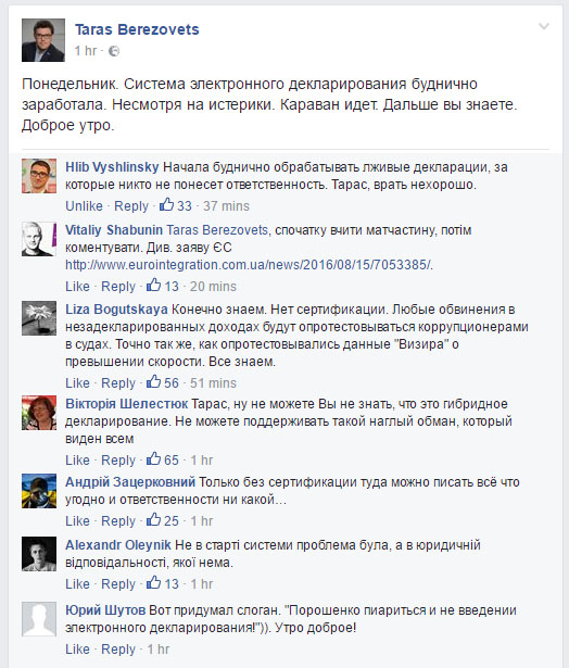 Правда, читатели соцсетей им не слишком верят – лента комментариев под постом Тараса Березовца это ярко иллюстрирует.