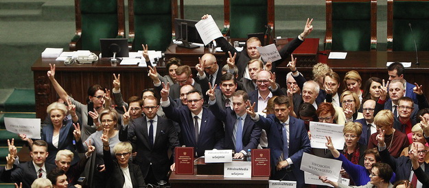 Левые и либеральные публицисты объявили (не в первый раз за год) конец демократии в Польше. Депутаты оппозиции продолжили блокировать трибуну.
