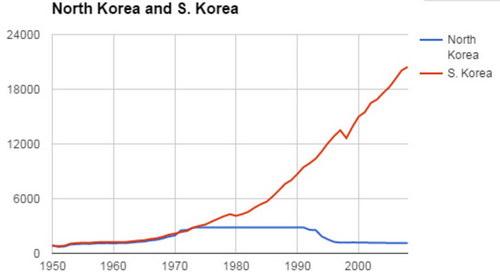 Но наиболее показателен ее скачок, если сравнить ВВП на душу населения с Северной Кореей.
