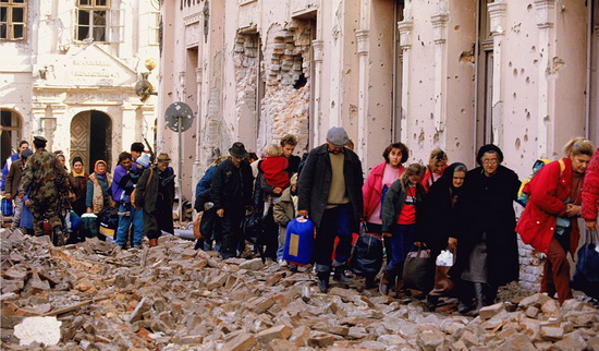| В 1991 сербы выгнали из Вуковара жителей-хорватов. На фото - их принудительная эвакуация |