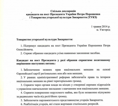 В "соглашении" Порошенко и Брензовича от 2014 года это звучит так: "обеспечить парламентское представительство венгров Закарпатья". А это значит, что даже в случае изменения избирательной системы ключевые партии способны и даже заинтересованы в том, чтобы удовлетворить меньшинства.