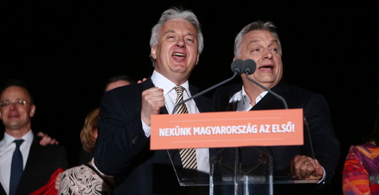 Звернення Орбана до своїх прихильників було доволі коротким – він оголосив про перемогу, висловив вдячність своїм виборцям та окремо подякував за підтримку закордонним угорцям, які "допомогли захистити Батьківщину".