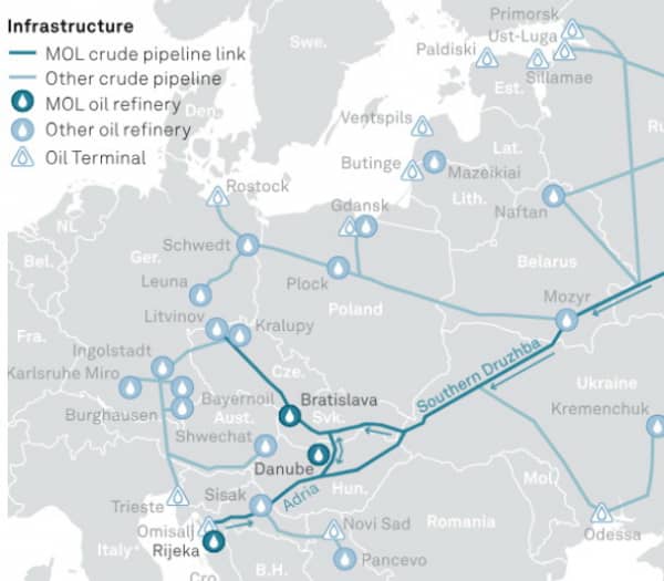 Така залежність багато років пояснювалася історичними й географічними обставинами: відсутністю прямого виходу до моря та тим, що два ключових НПЗ компанії MOL – у Сазхаломбатті (Угорщина) та Братиславі (Словаччина) – спроєктовані саме під російську нафту ще за часів СРСР.