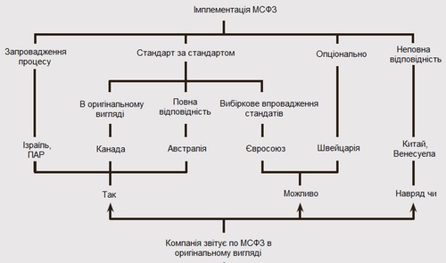 - Адаптація МСФЗ (Китай, Венесуела). Країна бере МСФЗ за основу і вносить різні доповнення, відповідно до національного контексту;