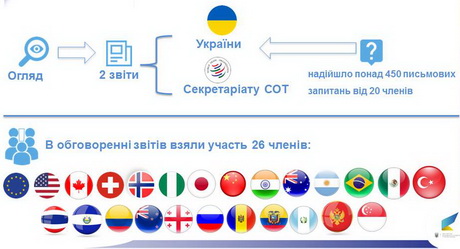 Напередодні засідання Україною було отримано понад 450 письмових запитань до зазначених звітів від 20 членів СОТ, що свідчить про суттєвий інтерес членів цієї міжнародної організації до України та їхню зацікавленість у поглибленні й розширенні торговельно-економічної співпраці з нашою державою. На всі запитання, що були отримані до закінчення строку подачі, нами було оперативно (до початку засідання, як велить процедура) надано відповіді.
