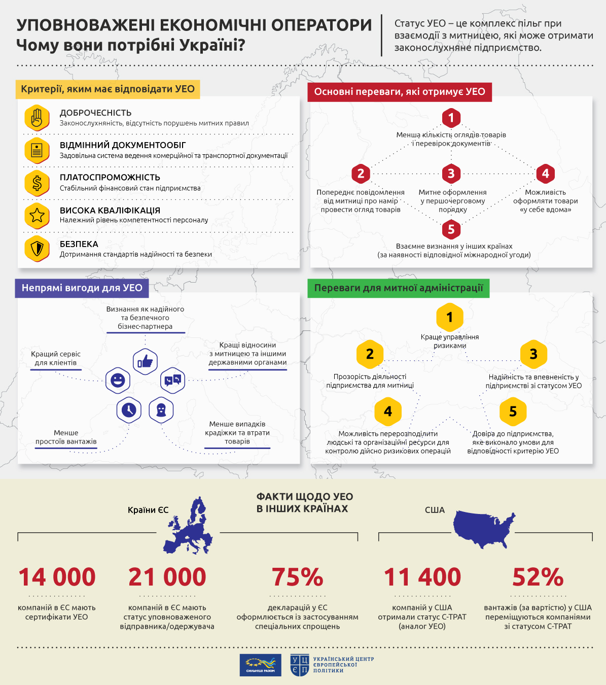 По Соглашению об ассоциации с ЕС, Украина должна имплементировать в свое законодательство Таможенный кодекс Европейского Союза (Приложение XV к Соглашению). УЭО – среди тех положений, которые должны быть имплементированы в течение трех лет с момента вступления в силу Соглашения.