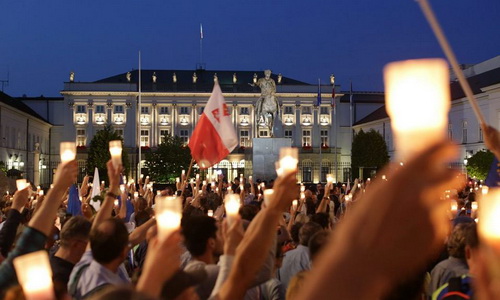 | Протесты под президентским дворцом в Варшаве |