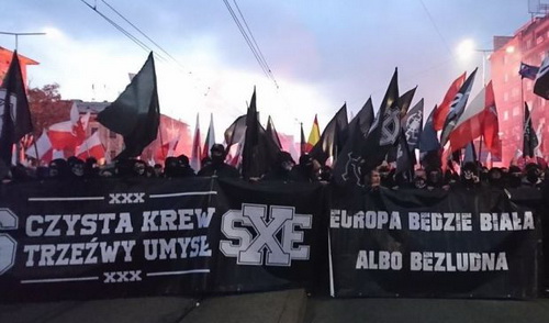 Среди 60 тысяч участников марша оказалось немало праворадикалов, пришедших с транспарантами: "Белая Европа", "Европа только для белых", а также "Помним о Львове и Вильнюсе". Все это вкупе с нацистскими приветствиями не могло пройти незамеченным.