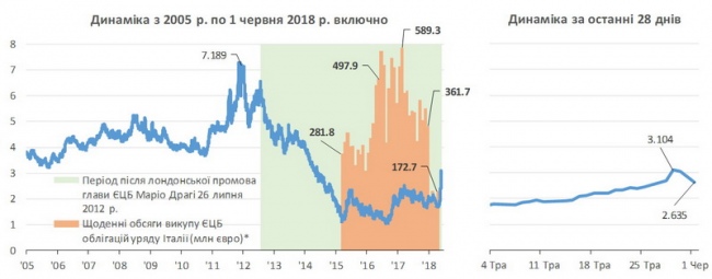 В результаті у вівторок 29 травня дохідність 10-річних облігацій уряду Італії стрибнула до 3,1%, що стало максимумом за останні чотири роки.