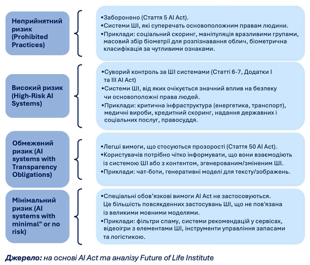 У ЄС під AI Act будується дворівнева інституційна архітектура: є центральний рівень і національні органи, які відповідають за нагляд і правозастосування.