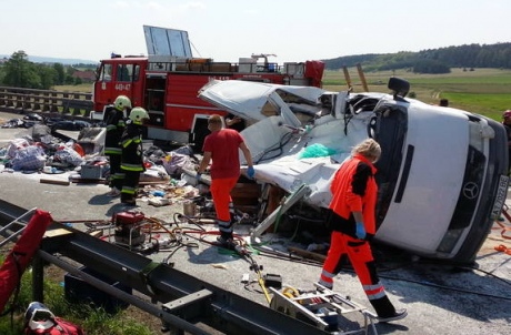 По одной из версий, водитель украинского автобуса заснул за рулем, поскольку он сбил предупредительные знаки о том, что далее на пути находится технический транспорт. Микроавтобус направлялся в Украину из Чехии, где наши соотечественники работали на строительстве.