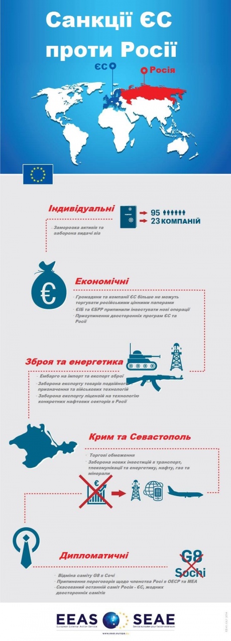 Европейская служба внешних дел распространила инфографику обо всех последних санкциях ЕС против России.