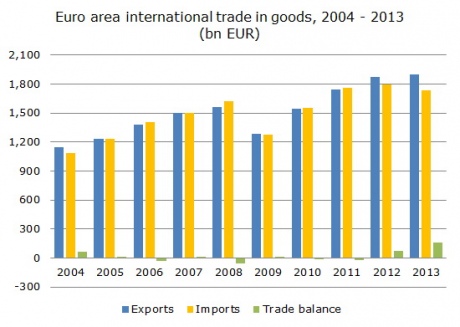 По данным опубликованным Eurostat 25 августа, сальдо торгового баланса еврозоны за июнь 2014 составил 16,8 млрд €, что на € 1,1 млрд больше, чем год назад и до € 1,4 млрд больше, чем в мае 2014 года.