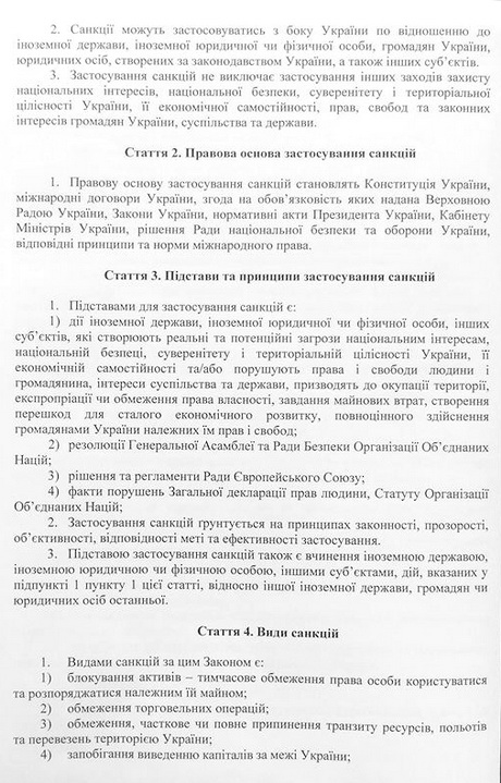 Одним из оснований для введения санкций, как предусмотрено в документе, могут быть "решения и регламенты Европейского Союза". Очевидно, таким образом был открыт юридический путь присоединения Украины к уже принятым и будущим санкционным решениям Совета ЕС.