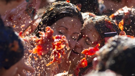 "Томатный бой", идея которого была позаимствована у испанского фестиваля "Ла Томатина", стал знаком протеста против запрета Россией на импорт продовольствия из стран ЕС.