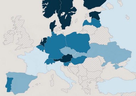В группу стран с очень высоким уровнем владения этим языком вошло 7 государств, среди которых - Швеция, Норвегия, Нидерланды, Эстония, Дания, Австрия и Финляндия.