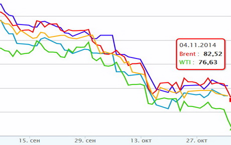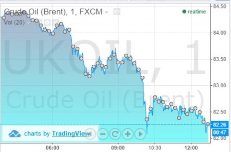 Инструменты мониторинга цены нефти демонстрируют, что после утреннего падения она держится на низких отметках. Минимальные котировки марки Brent после обеда достигали $82.07 за баррель. WTI также продолжает снижение в сторону индикатора $76.