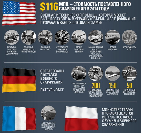 США уже гарантировали бесплатное предоставление Украине снаряжения на сумму $116 млн: бронежилеты, шлемы, транспорт, тепловизоры, приборы ночного видения, спецтехнику, рации, патрульные лодки, палатки, радары, обмундирование, сообщило ранее американское правительство.