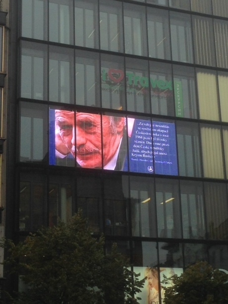 "За выражение несогласия с советской оккупацией Чехословакии в 1968 году я отсидел в тюрьме три года. Сейчас президент Чехии призывает смириться с аннексией Крыма", - написано на билбордах.