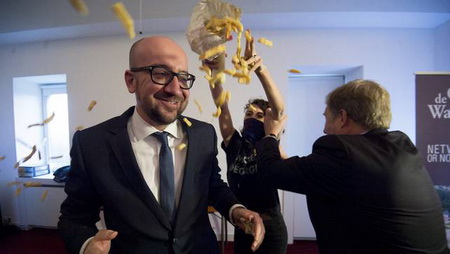 Активистки облили майонезом и обсыпали картофелем премьера Бельгии