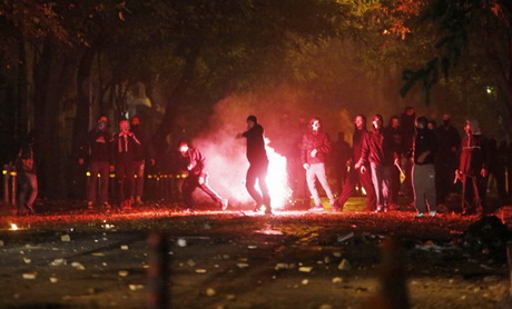 Митинг, начинавшийся как мирная демонстрация, со временем превратился в столкновения с полицией. На этот раз в Афинах, Салониках и Патре на улицы вышли сотни молодых людей, "вооруженных" зажигательной смесью и камнями.