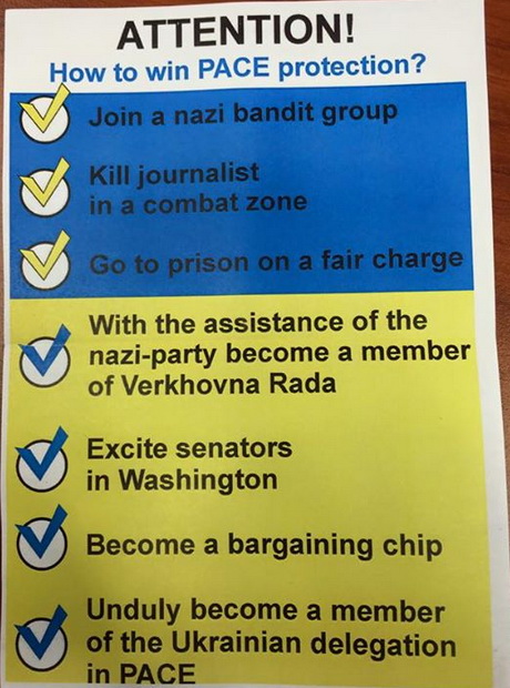 Россияне клеили провокационные стикеры на двери делегации Украины в ПАСЕ