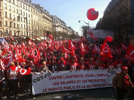 Десятки тысяч французов вышли на улицы в городах и поселках по всей Франции, протестуя против сокращения государственных расходов на социальные программы. Протесты организованы профсоюзами.