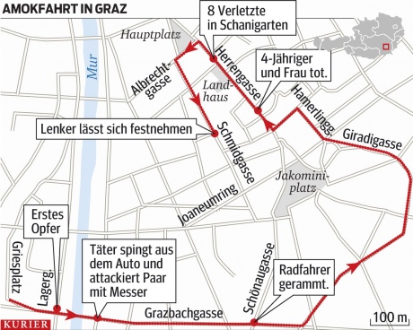 Полиция раскрыла некоторые данные относительно виновника трагедии в австрийском городе Грац, где человек умышленно направил автомобиль на людей в пешеходной части города, оставив 3 погибших и 34 раненых.