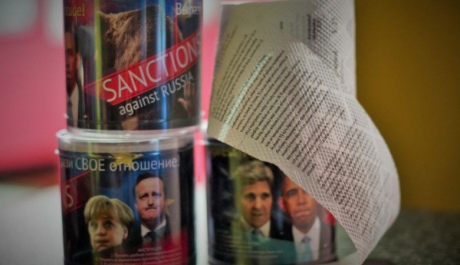 В российском Омске начат выпуск туалетной бумаги, на котором напечатан текст санкций против РФ, принятых ЕС 12 сентября 2014 года.