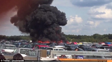 Самолет взорвался после того, как совершил аварийную посадку и упал на автомобильную стоянку.