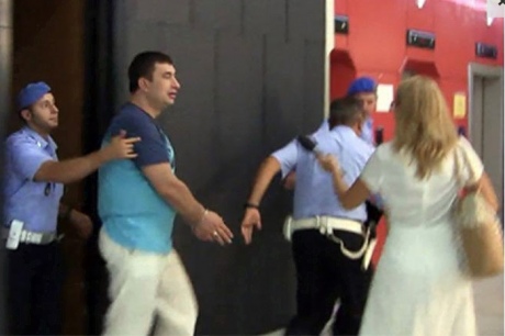 По информации агентства, на слушания экс-депутат из тюрьмы в курортном городке Арма-ди-Таджа прибыл короткостриженым, в белых штанах и футболке в сопровождении переводчика и адвоката Энрико Скопези.