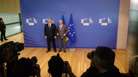 | Порошенко и Юнкер начали переговоры в Брюсселе (фото из Twitter) |